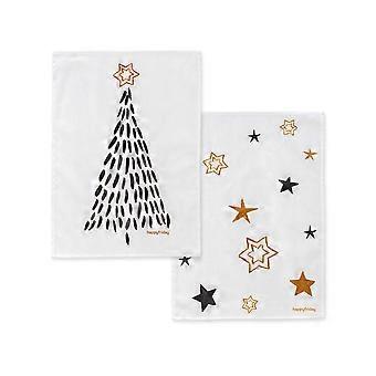 Küchentuch HappyFriday Xmas Gold Bunt 70 x 50 cm (2 Stück) BigBuy