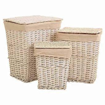 Korb für schmutzige Wäsche Alexandra House Living Weiß korb Weidenholz 36 x 54 x 45 cm 37 x 28 x 46 cm 30 x 22 x 38 cm 3 Stücke BigBuy