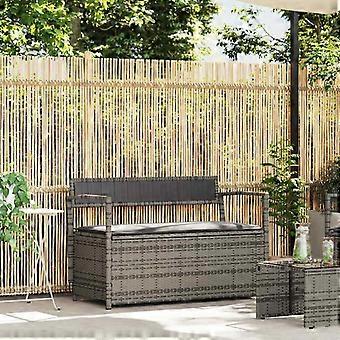 Garden bench with storage and cushions Grey Poly Rattan vidaXL