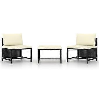 3 pcs. Garden Sofa Set with Cushions Black Poly Rattan vidaXL