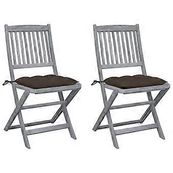 折叠花园椅 2 件带坐垫实木金合欢 vidaXL