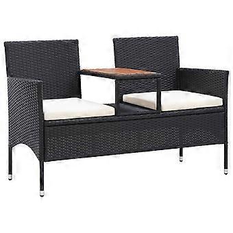 2 Seater Garden Bench with Tea Table 143 cm Poly Rattan Black vidaXL