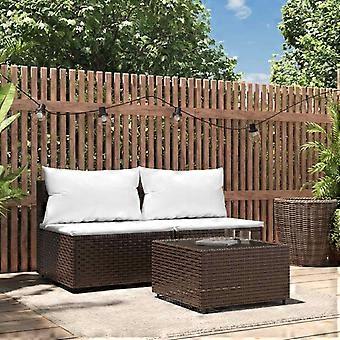 花园长凳 2人座带靠垫 棕色 PP 藤编 vidaXL