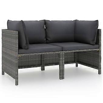 3 pcs. Garden Sofa Set with Cushions Grey Poly Rattan vidaXL
