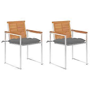 Puutarhatuolit tyynyillä, 2 kpl. Massiivipuuta ja terästä. vidaXL