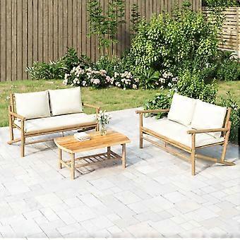 Kaksiosainen puutarhakalustesetti kermanvalkoisilla bambutyynyillä vidaXL