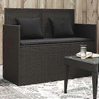 Puutarhapenkki tyynyllä musta 116x46x57 cm polyrottinki vidaXL