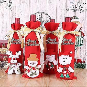4kpl jouluviinipullon lahjakasseja söpöjä iloisia jouluviinipullojen kansia nauhalla