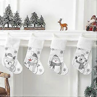 Joulu Pehmosukat, 48cm Valkoiset sukat Lahja Joulusukat hopeisella lumihiutaleella joulutakkakoristeisiin, Sisäjoulu,