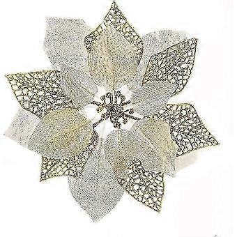 10 kpl joulutähtikukkia glitterillä, joulutähtipensaita, joulukuusen kukkia, joulua