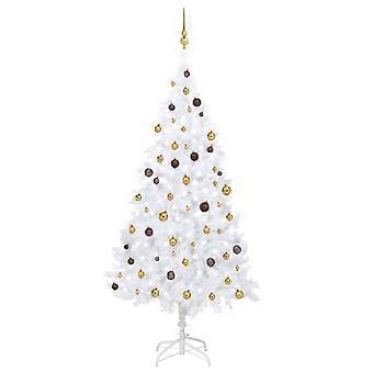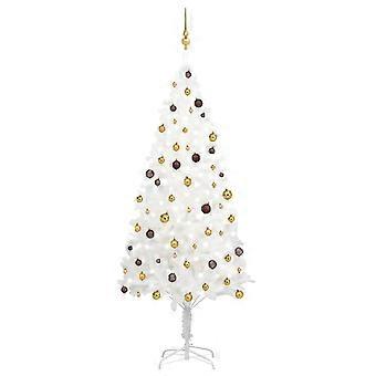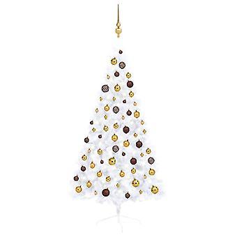 Künstlicher Halb-Weihnachtsbaum Beleuchtung Kugeln Weiß 150 cm vidaXL