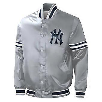New York Yankeesin hopeanvärinen satiini baseball-joukkueen Letterman-takki-035 Kartex Suits