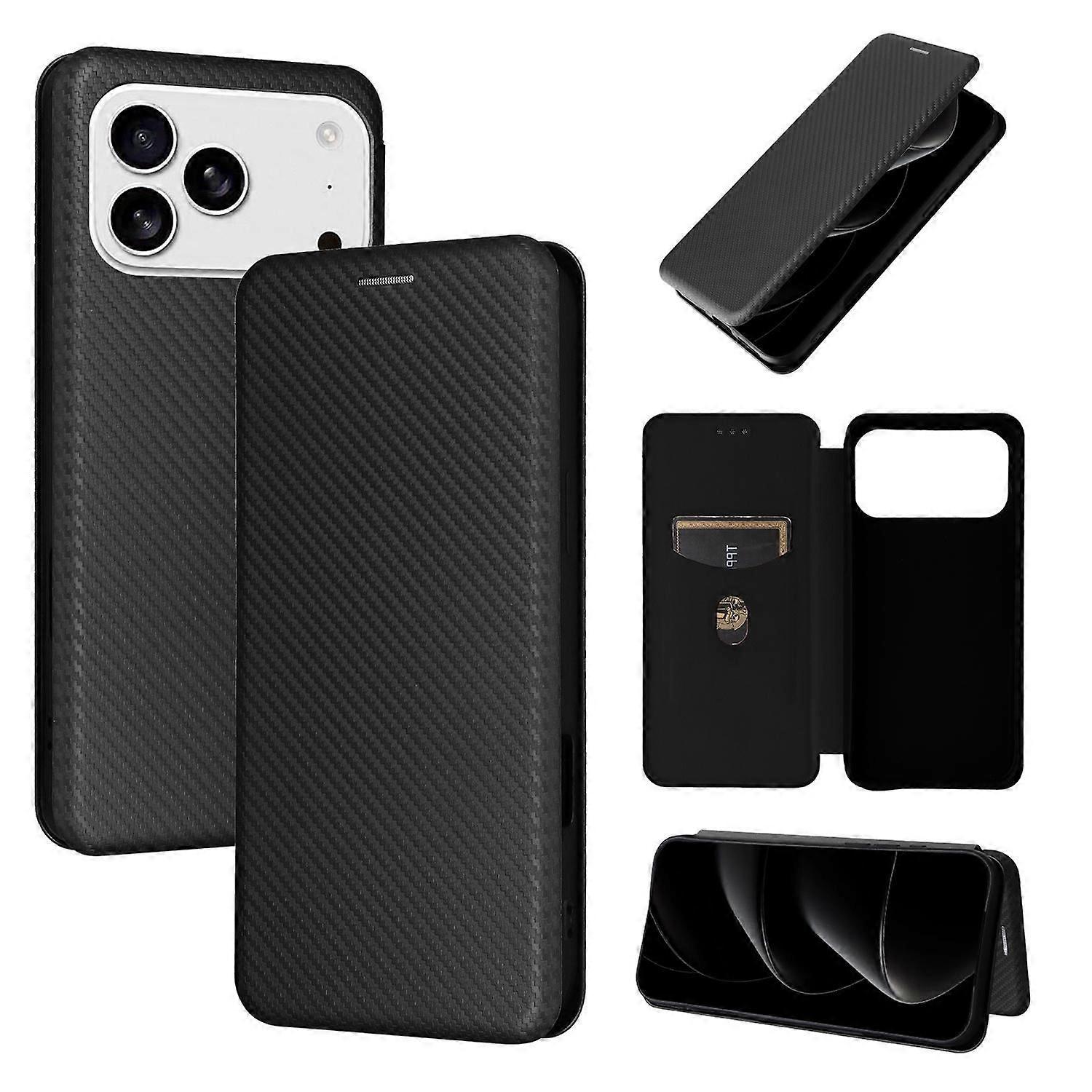 Für Apple iPhone 17 Pro Max Carbon Faser Flip Schutz Hülle Schwarz