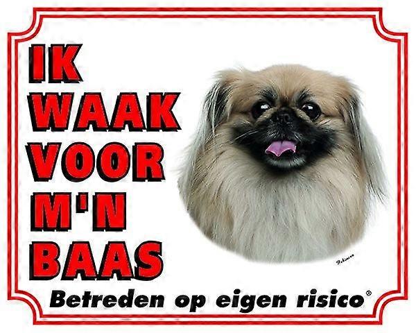 Stickerkoning Pekingees Waakbord - Ik Waak Voor Mijn Baas Blond