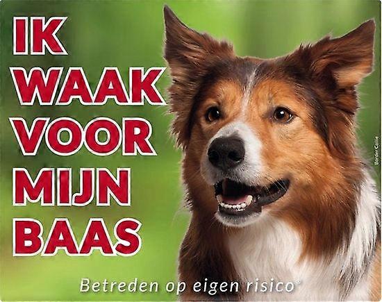 Ik waak voor mijn Baas waakbord met afbeelding van de Border Collie.Het waakbord is gemaakt van Polystreen.