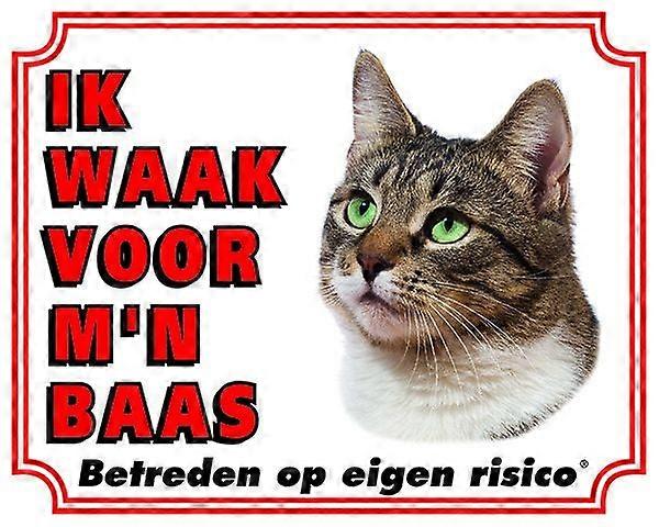 Stickerkoning Katten Waakbord - Ik Waak Voor Mijn Baas Tabby