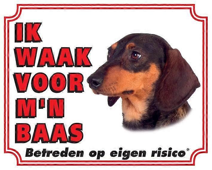 Stickerkoning Teckel Waakbord - Ik Waak Voor Mijn Baas Korthaar