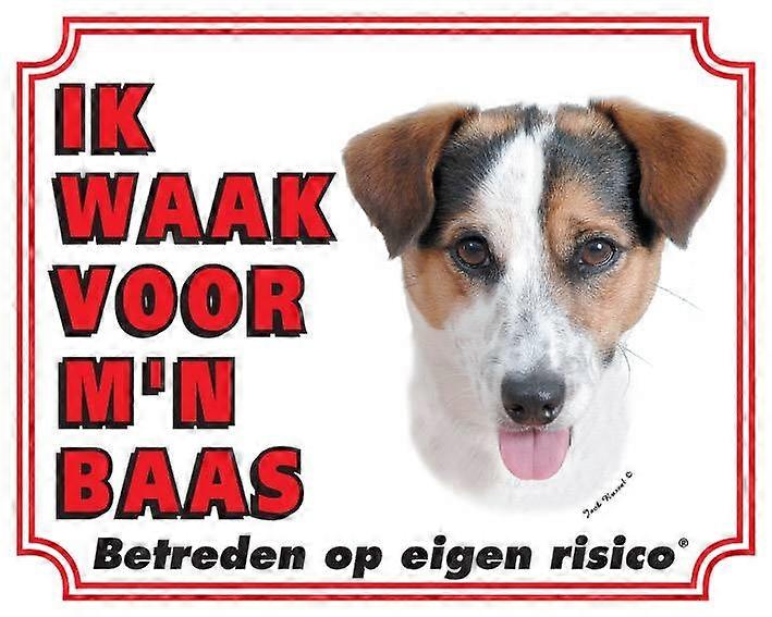 Ik waak voor mijn baas waakbord met afbeelding van de Jack Russell Terrier.Het waakbord is gemaakt van Polystreen.Afmetingen 25 x 20 x 0,1 cm.