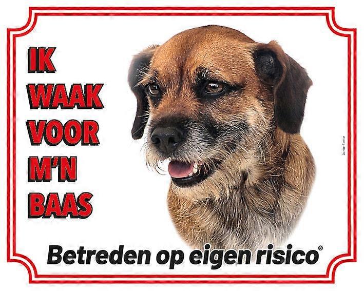 Ik waak voor mijn baas waakbord met afbeelding van de Border Terrier.Het waakbord is gemaakt van Polystreen.Afmetingen 25 x 20 x 0,1 cm. Laat onbevoegden weten met dit waakbord dat er een Border Terrier aanwezig is. Het bord heeft een witte achtergrond met een opdruk en is gemakkelijk te bevestigen door middel van de gaatjes aan de zijkanten.