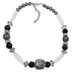 Kette 24x8mm Rillenperle Kunststoff silbergrau mit Rillenoliven kristallklar 42cm