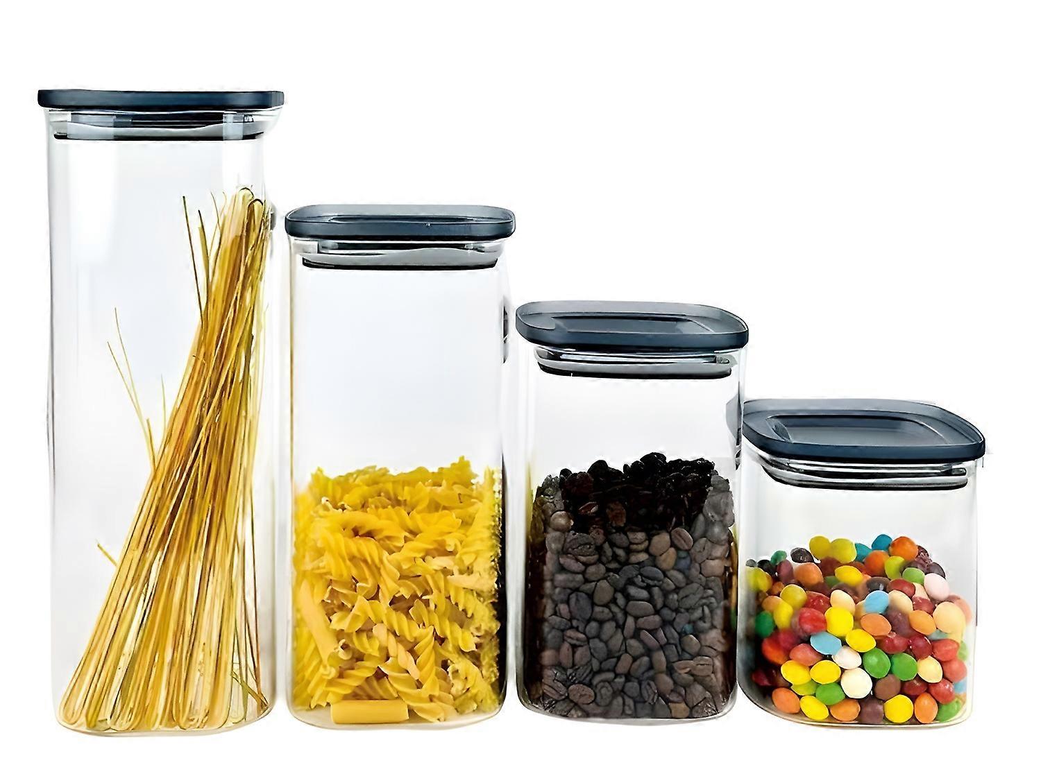 Lufttäta förvaringsburkar i glas, set om 4 med bambulock