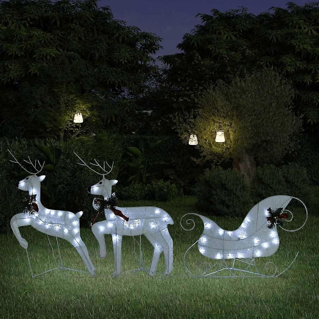 Rentier mit Schlitten Weihnachtsdekoration 60 LEDs Outdoor Weiß