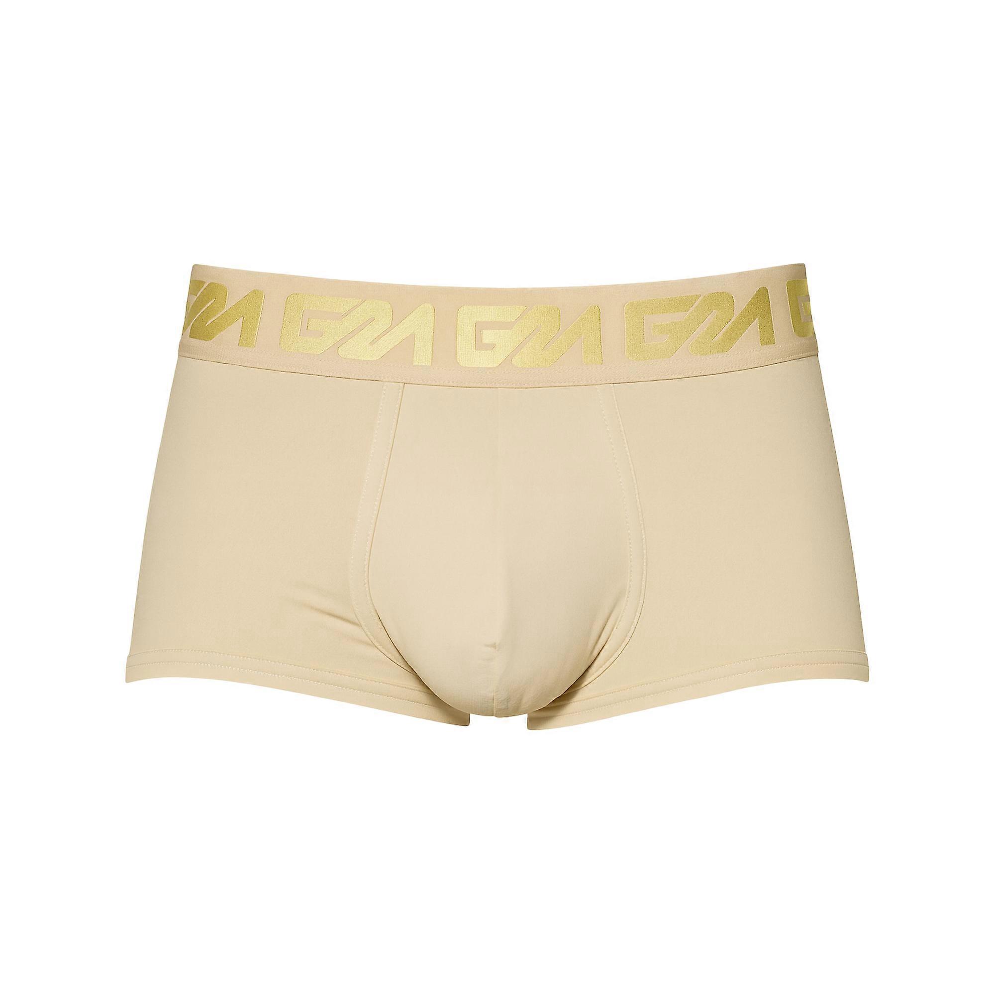 Met heren ondergoed van Garçon zit je altijd goed. Met combineert Garçon sportief ondergoed design met comfort. Dit is ondergoed waarmee je gezien wil worden Garçon Sahara Trunk Garçon Sahara Trunk is een nude boxer trunk in zacht, glad nylon die als een tweede huid om je heen sluit. De lage tailleband met goudkleurig logo geeft een luxe touch, terwijl de gevormde pouch je mannelijkheid ondersteunt en subtiel naar voren brengt. De strakke pasvorm volgt je lijnen zonder te knellen, ideaal onder lichte broeken, op een avond uit of wanneer je een bijna onzichtbare, maar toch sexy look wilt.