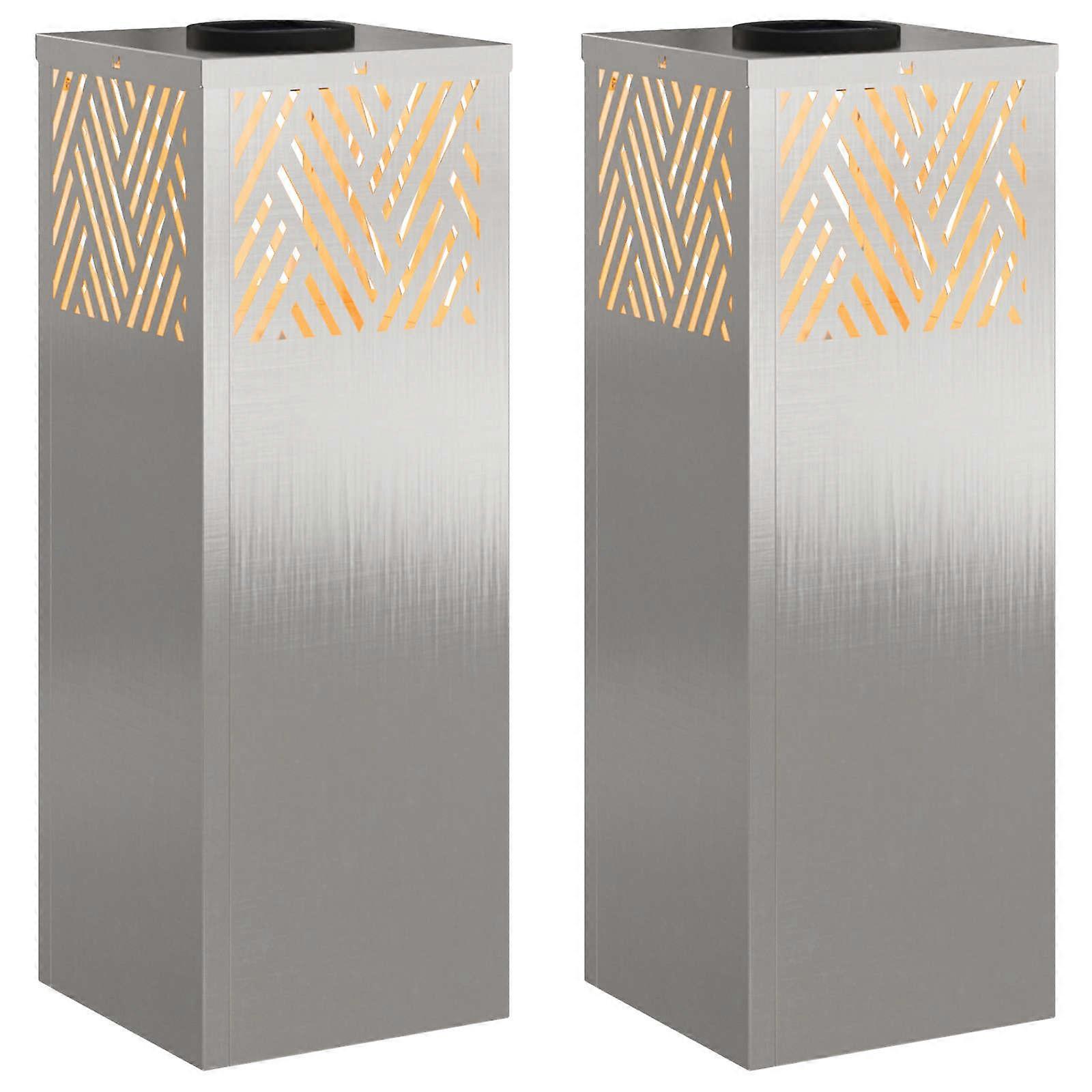 Farbe: EdelstahlMaterial: EdelstahlGesamtabmessungen: 18 x 18 x 50 cm (L x B x H)Gewicht: 4,53 kgLanglebigLichter schalten sich automatisch ein und aus, je nach UmgebungslichtFreistehendes bettSolarbatterie kann mehr als 8 Stunden leuchten, wenn sie vollständig aufgeladen istLichttyp: Batteriebetriebene LeuchtenFarbe der Lichter: Warmes WeißNur für den AußenbereichLieferumfang:2 x Lichter2 x AA wiederaufladbare Batterien (Solarbetrieb)Montage erforderlich: Ja