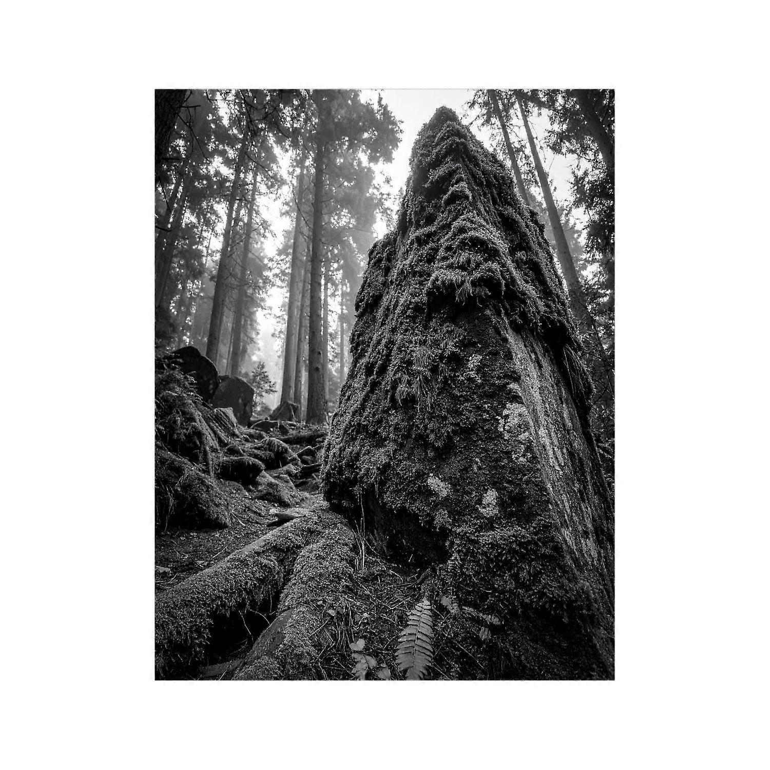 Wandbild Moosbewachsener Schwarz Weiss 2