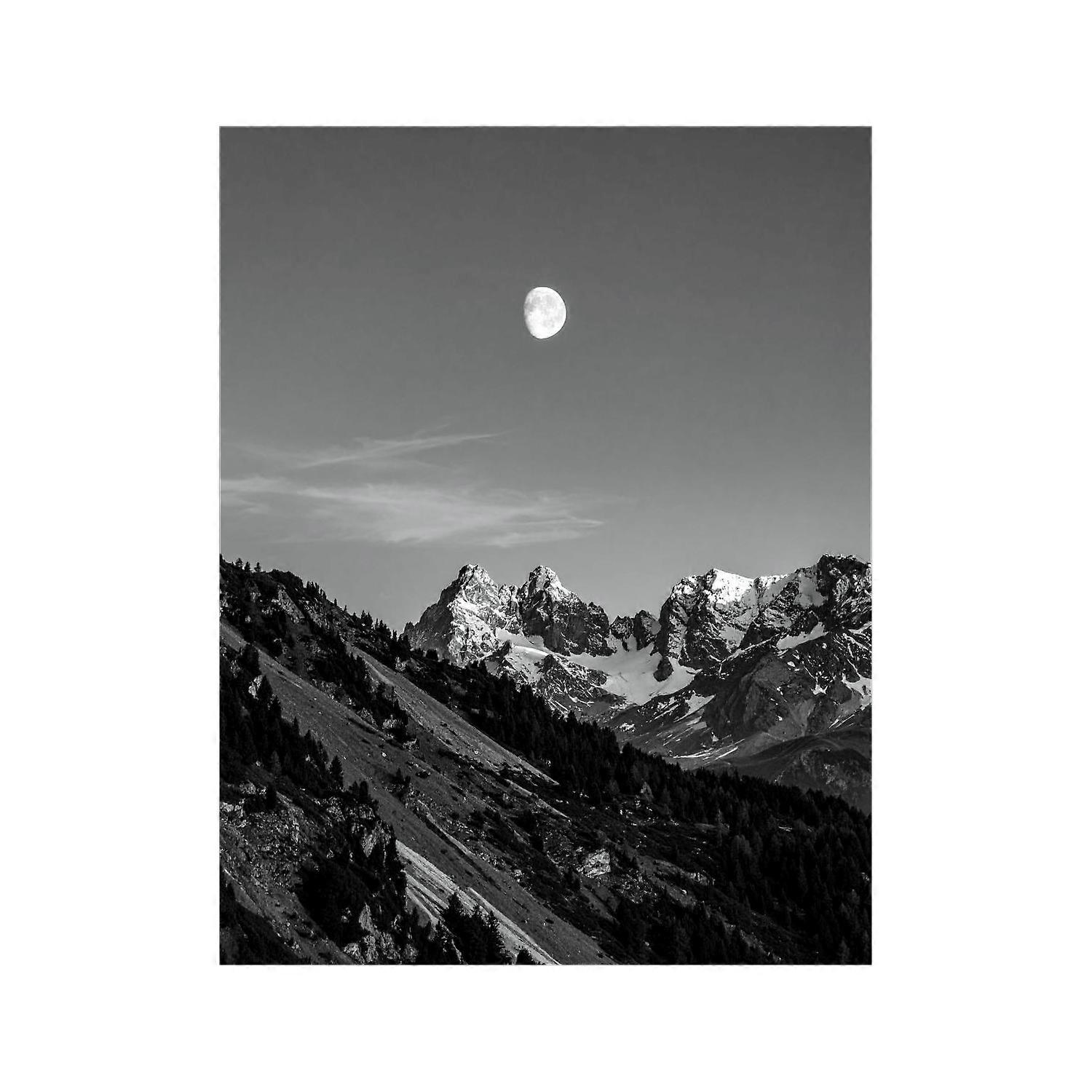 Wandbild Mond über Den Alpen Schwarz Weiss 2