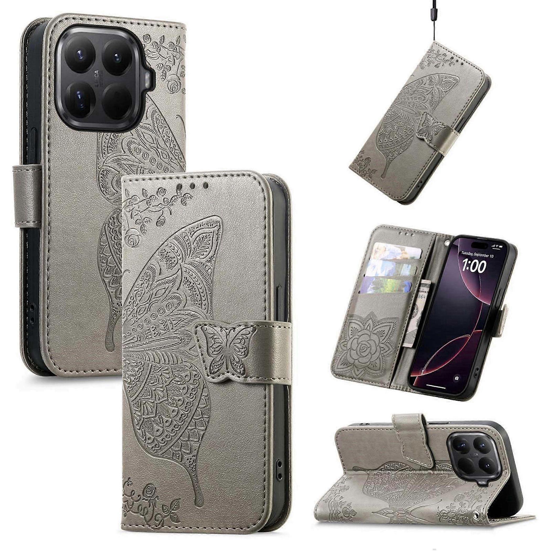 Für Xiaomi 15T Pro Kunstleder Schmetterling Book Wallet Hülle Grau