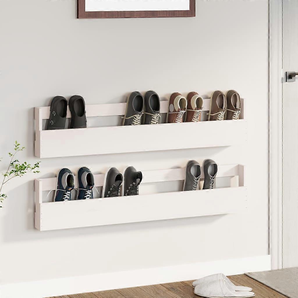 Wand-Schuhregale 2 Stk. Weiß 110x9x23 cm Massivholz Kiefer