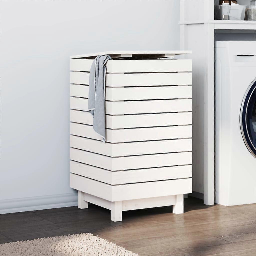 Wäschetruhe Weiß 44x44x76 cm Massivholz Kiefer