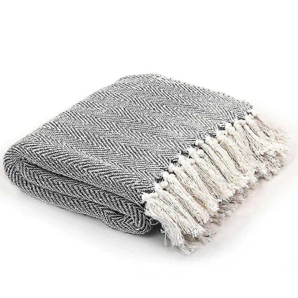 Überwurf Baumwolle Fischgrätenmuster 125x150 cm Marineblau