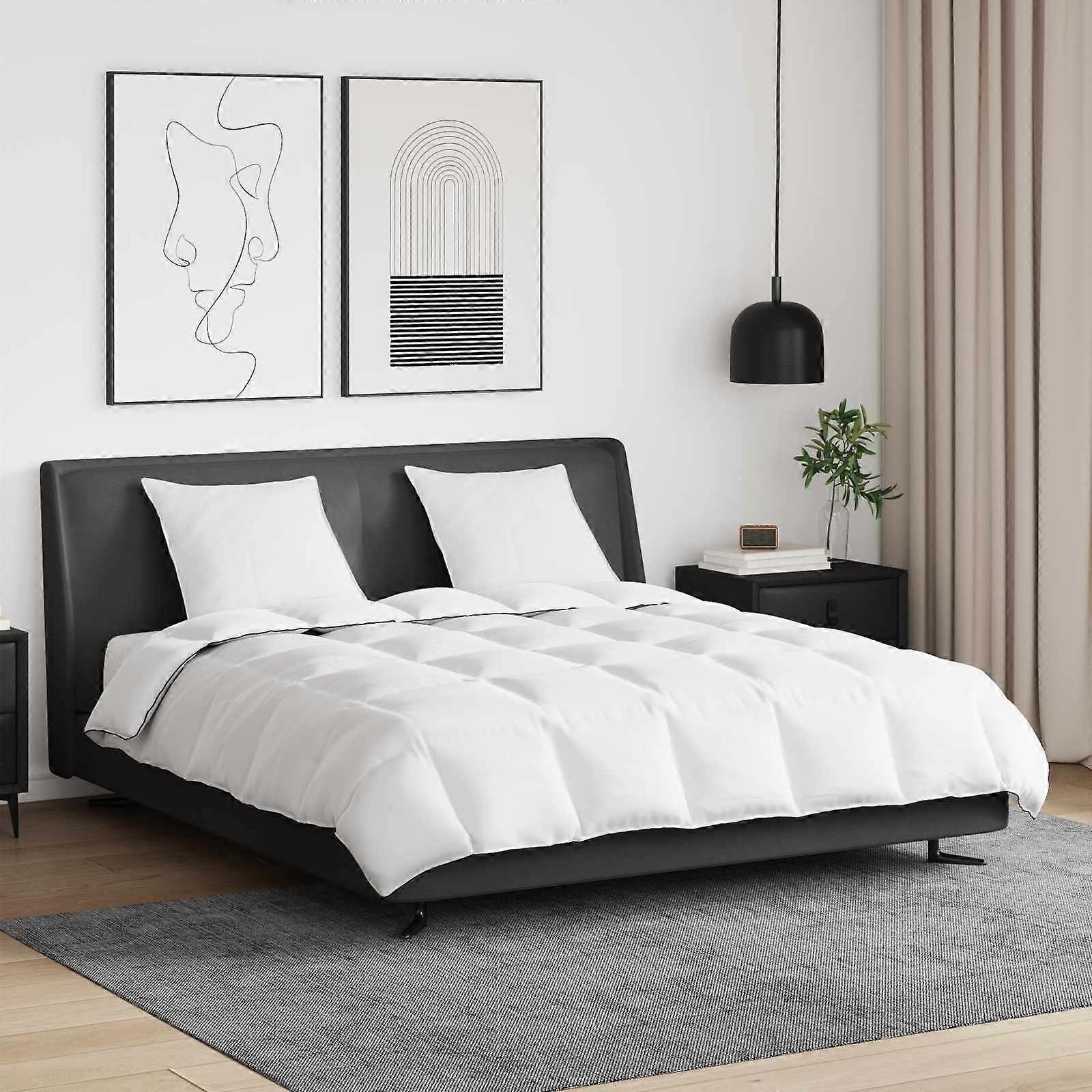 Dieses moderne Bettwäsche-Set steigert den Schlafkomfort mit seinem eleganten, minimalistischen Design und der hochwertigen Verarbeitung. Es passt in jedes Schlafzimmer und sorgt mit seiner glatten Textur für ein einladendes Ambiente, ideal zum Entspannen in der kalten Jahreszeit. Premium-Materialien: Dieses Set bringt die besten Eigenschaften von Mikrofaser und Baumwolle zusammen – für ein luxuriöses, angenehmes Gefühl. Die atmungsaktiven Baumwollfasern sorgen für Komfort, während die Mikrofaser zusätzliche Weichheit bietet, die dich warm umhüllt, ohne schwer zu sein. Enthält Essentials: Im Set sind 1 Decke und 2 Kissen enthalten. Die Decke hat ein schickes Kastensteppdesign, das die Daunenfüllung an Ort und Stelle hält und kalte Stellen vermeidet. Die Kissen sind aus Baumwolle und mit Daunen gefüllt, damit du bequem schlafen kannst. Vereinfachte Merkmale: Der minimalistische Stil mit klaren Linien und feinen Details sorgt für einen modernen Look, der jede Schlafzimmerdekoration ergänzt, ohne überladen zu wirken. Ideal für alle, die Eleganz schätzen. Vielseitige Verwendung: Hauptsächlich für das Schlafzimmer gedacht, bietet dieses Set an kalten Winternächten Gemütlichkeit. Es passt wunderbar in moderne Räume, ist aber auch vielseitig genug für verschiedene Einrichtungsstile und spricht alle an, die Stil und praktische Funktionen schätzen. Einfache Pflege: Die Pflege des Bettwäsche-Sets ist dank des maschinenwaschbaren Designs kinderleicht. Waschbar bis 40°C bleibt es frisch mit minimalem Aufwand, erhält seine Qualität und verlängert die Lebensdauer, was Zeit und Mühe spart. Farbe: WeißMaterial: DaunenfederGesamtabmessungen: 200 x 220 cm (L x B)Gewicht: 3,91 kgAtmungsaktives MaterialBoxnaht und gesteppter StilFüllmaterial: Daunen, Federnmit 2 KissenInnen- / Außenbereich: Nur für den InnenbereichLieferumfang:1 x Bettdecke2 x Kissen