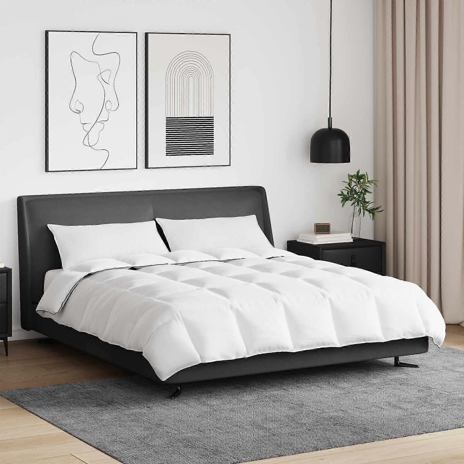 Dieses moderne Bettwäsche-Set steigert den Schlafkomfort mit seinem eleganten, minimalistischen Design und der hochwertigen Verarbeitung. Es passt in jedes Schlafzimmer und sorgt mit seiner glatten Textur für ein einladendes Ambiente, ideal zum Entspannen in der kalten Jahreszeit. Premium-Materialien: Dieses Set bringt die besten Eigenschaften von Mikrofaser und Baumwolle zusammen – für ein luxuriöses, angenehmes Gefühl. Die atmungsaktiven Baumwollfasern sorgen für Komfort, während die Mikrofaser zusätzliche Weichheit bietet, die dich warm umhüllt, ohne schwer zu sein. Enthält Essentials: Im Set sind 1 Decke und 2 Kissen enthalten. Die Decke hat ein schickes Kastensteppdesign, das die Daunenfüllung an Ort und Stelle hält und kalte Stellen vermeidet. Die Kissen sind aus Baumwolle und mit Daunen gefüllt, damit du bequem schlafen kannst. Vereinfachte Merkmale: Der minimalistische Stil mit klaren Linien und feinen Details sorgt für einen modernen Look, der jede Schlafzimmerdekoration ergänzt, ohne überladen zu wirken. Ideal für alle, die Eleganz schätzen. Vielseitige Verwendung: Hauptsächlich für das Schlafzimmer gedacht, bietet dieses Set an kalten Winternächten Gemütlichkeit. Es passt wunderbar in moderne Räume, ist aber auch vielseitig genug für verschiedene Einrichtungsstile und spricht alle an, die Stil und praktische Funktionen schätzen. Einfache Pflege: Die Pflege des Bettwäsche-Sets ist dank des maschinenwaschbaren Designs kinderleicht. Waschbar bis 40°C bleibt es frisch mit minimalem Aufwand, erhält seine Qualität und verlängert die Lebensdauer, was Zeit und Mühe spart.
