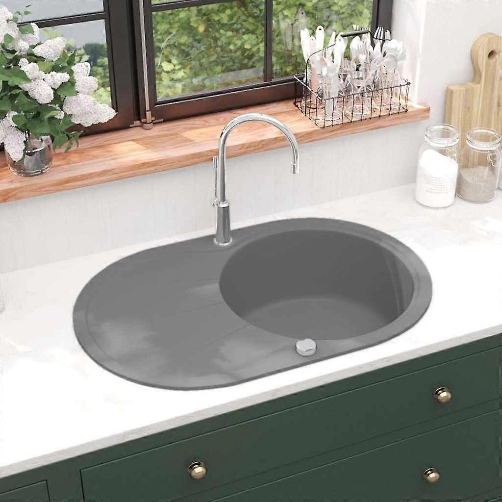 Granitspüle Einzelbecken Oval Grau