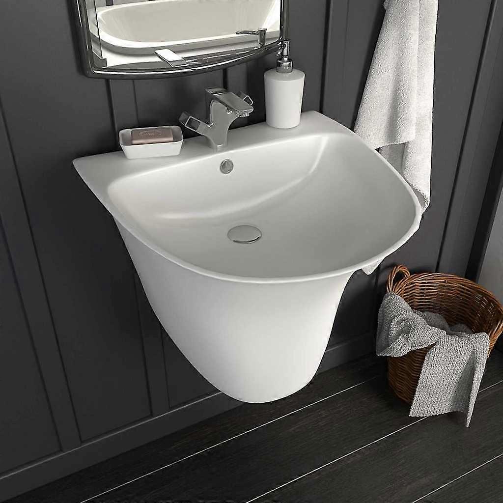 Dieses coole Waschbecken für dein Badezimmer aus toll glasiertem Keramik strahlt moderne Eleganz aus und passt zu vielen Badezimmerstyles. Es wurde für drinnen entworfen und bietet eine schicke Funktionalität mit seinem minimalistischen Look, ideal für alle, die Funktion und Stil schätzen. Das symmetrische Design bringt mit klaren Linien und der weißen Oberfläche einen tollen Blickfang in jedes Badezimmer. Die kompakte Größe fügt sich super in verschiedene Badezimmerkonfigurationen ein und sorgt für einen effizienten Raumnutz. Hochwertige Keramikverarbeitung: Das Becken ist hochwertig aus glasiertem Keramik gefertigt, das für sein tolles Aussehen und die Strapazierfähigkeit bekannt ist. Dadurch bietet es eine langlebige Lösung mit einem schönen Glanz, der das Licht klasse reflektiert. Seine wasserabweisenden Eigenschaften machen es zur zuverlässigen Wahl für jedes Badezimmer. Nahtlose Wandinstallation: Mit dem praktischen Design kann das Becken easy an der Wand montiert werden, was viel Platz im Badezimmer spart. So bleibt der Boden frei und das Bad sieht ordentlich aus. Die Installation ist ganz unkompliziert, was sowohl bequem ist als auch gut aussieht. Modernes minimalistisches Design: Das Waschbecken überzeugt durch schlichte Eleganz. Die klaren Linien und das reduzierte Design machen es zur idealen Ergänzung für zeitgemäße Räume. Es fügt sich perfekt in verschiedene Dekostile ein und bringt sowohl Stil als auch Raffinesse. Perfekt für kompakte Räume: Mit den Maßen von 47 x 45 x 37 cm ist es ideal für Bäder mit wenig Platz. Ob in größeren oder kleineren Wohnungen, die Größe ermöglicht einen effizienten Einsatz ohne Abstriche bei Stil und Funktion. Einfache Wartung: Die glänzende Keramikoberfläche sorgt dafür, dass das Becken leicht zu reinigen ist. Ein einfaches Abwischen mit einem feuchten Tuch genügt, um alltäglichen Dreck zu entfernen und es strahlend sauber zu halten. Diese leichte Pflege macht es noch attraktiver für alle, die pflegeleichte Badezimmerlösungen suchen. Farbe: WeißMaterial: Glasierte KeramikGesamtabmessungen: 47 x 45 x 37 cm (L x B x H)Gewicht: 54,7 kgWandbefestigungNur für den InnenbereichLieferumfang:1 WaschbeckenMontage erforderlich: Ja