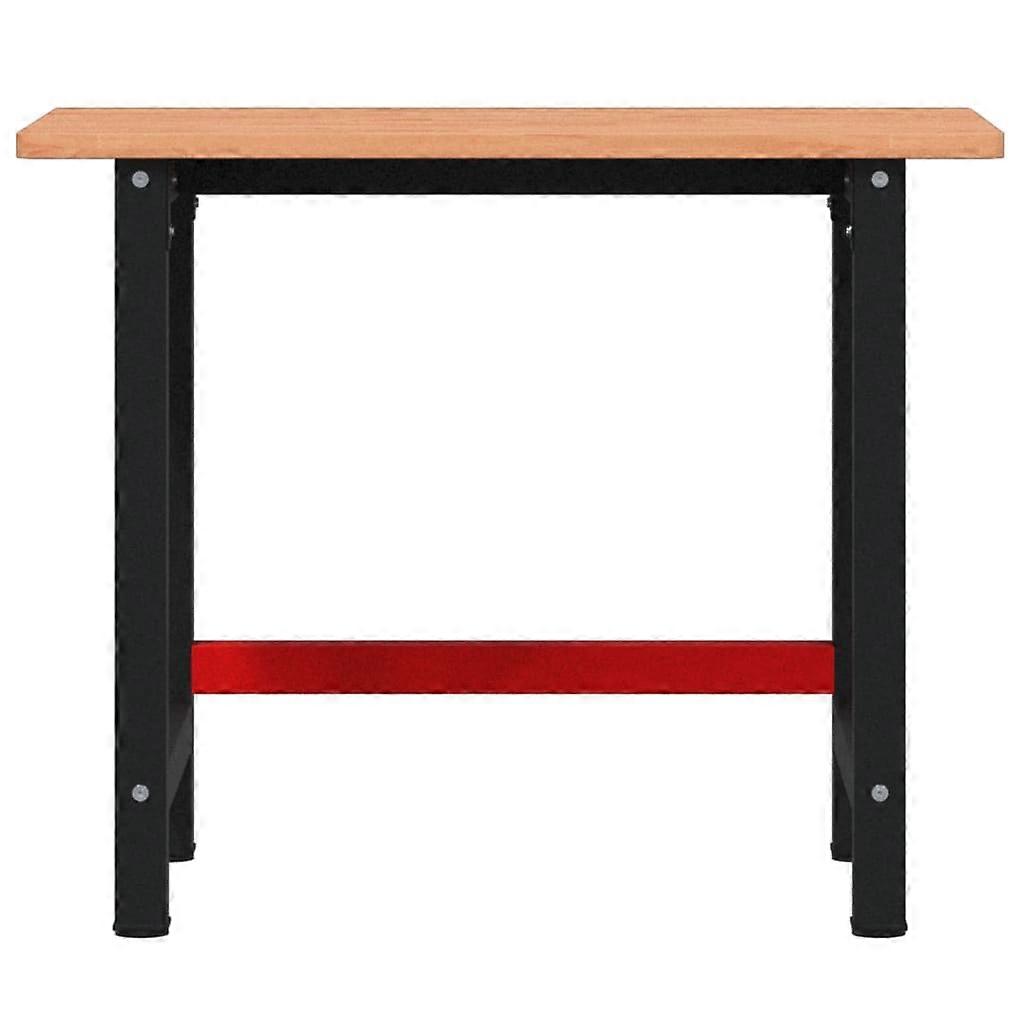 Die Werkbank ist ein großartiger Helfer, wenn du Reparaturarbeiten erledigen oder deine Heimwerker-Träume erfüllen möchtest Robustes und langlebiges Material: Massives Buchenholz ist ein wunderschönes Naturmaterial. Buchenholz weist eine gerade Maserung auf und ist auf eine lange Lebensdauer ausgelegt.Stabiles und haltbares Gestell: Aus pulverbeschichtetem Metall gefertigt, ist das Gestell robust, stabil, langlebig, korrosions- und witterungsbeständig und gewährleistet dadurch eine lange Lebensdauer.Großer Arbeitsbereich: Der Arbeitstisch verfügt über eine geräumige Arbeitsplatte, die Platz für Bohrer, Kabeltrommel und weiteres Werkzeugzubehör bietet.Vielseitig einsetzbar: Mit ihrem schlichten und klaren Design lässt sich die Werkbank je nach Bedarf auch als Arbeitstisch verwenden. Sie ist daher ein praktisches und bequemes Möbelstück. Gut zu wissen:Jedes Stück ist ein Unikat, das in Farbe und Maserung variiert. Die Lieferung erfolgt in zufälliger Reihenfolge, wodurch die Exklusivität und Individualität deines Produkts gewährleistet wird. Achtung:Die Tischplatte ist mit keinen vorgebohrten Löchern versehen und Schrauben sind nicht im Lieferumfang enthalten. Daher müssen die Löcher gebohrt und die Schrauben vor dem Zusammenbau dieses Arbeitstisches erworben werden. Gesamtabmessungen: 100 x 60 x 81,5 cm (L x B x H)Zusammenbau erforderlich: JaTischplatte:Material: Massives Buchenholz mit LackierungStärke der Arbeitsplatte: 2,5 cmForm: RechteckigTischbeine:Farbe: Schwarz und RotMaterial: pulverbeschichtetes MetallAbmessungen: 80 x 57 x 79 cm (L x B x H)Empfohlene Schraubengröße (nicht im Lieferumfang enthalten): 5 x 60 mm (Durchmesser x L), max. 16 Stk.Lieferung umfasst:1 x Tischplatte1 x Tischbein