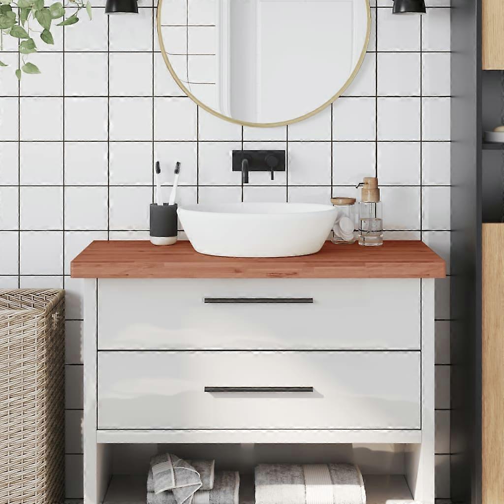 Langlebige Konstruktion: Diese Waschtischplatte besteht aus massivem Buchenholz, einem wunderschönen Naturmaterial. Buchenholz weist eine gerade Maserung auf und ist auf eine lange Lebensdauer ausgelegt.Vielseitig einsetzbar: Diese Arbeitsplatte aus Holz kann als Waschtischplatte, Regal, Schrank-Oberplatte und mehr verwendet werden. Sie lässt sich auch je nach Bedarf mit beliebig geformten Beinen kombinieren.Abgerundete Ecken: Die 4 abgerundeten Ecken der Waschtischplatte verringern die Verletzungsgefahr, um die Sicherheit deiner Kinder und Familie zu gewährleisten.Einfache Reinigung: Die glatte Waschtischplatte lässt sich mit einem feuchten Tuch leicht reinigen. Gut zu wissen:Jedes Stück ist ein Unikat, das in Farbe und Maserung variiert. Die Lieferung erfolgt in zufälliger Reihenfolge, wodurch die Exklusivität und Individualität deines Produkts gewährleistet wird.