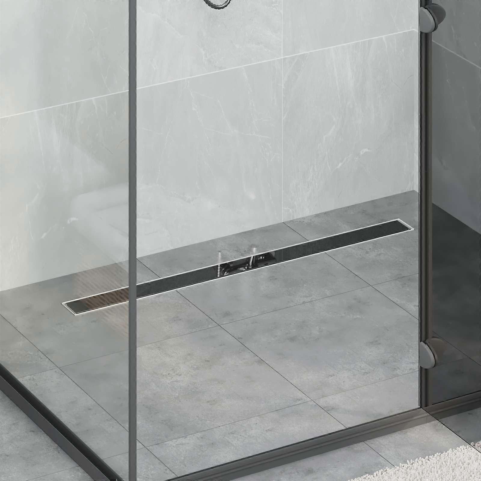 Duschabfluss mit Glasabdeckung Schwarz 90 cm Edelstahl 304