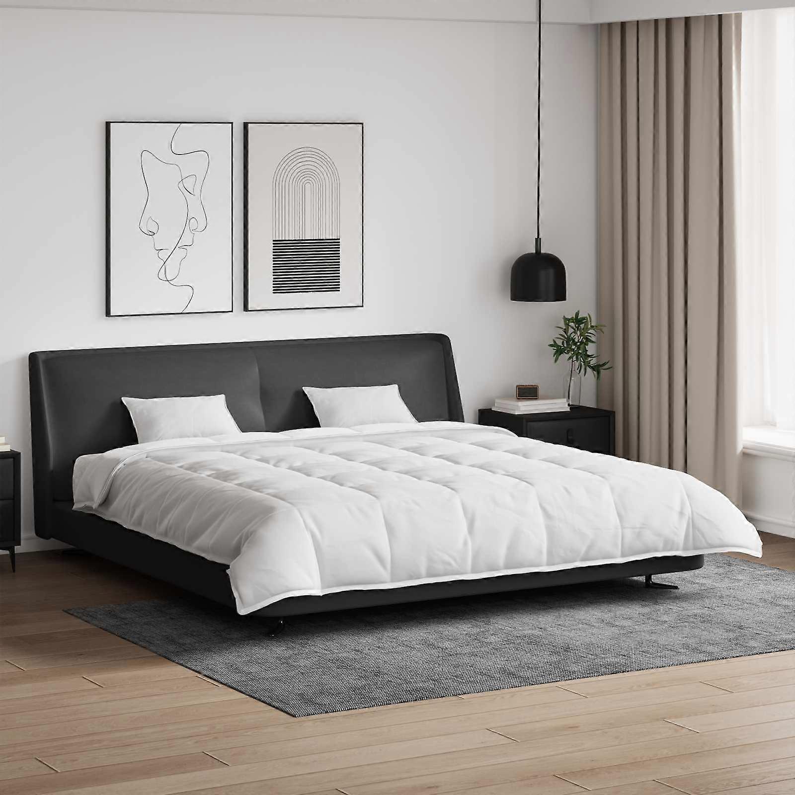 Dieses Winter-Duvet-Set steht für schlichte Eleganz und verwandelt jedes Schlafzimmer in einen gemütlichen Rückzugsort. Ideal für alle, die auf sauberes Design und Funktionalität stehen. Mit diesem Set wird dein Schlaferlebnis großartig und verleiht deinem Raum einen Hauch von Eleganz. Die gesteppten Texturen und der neutrale Weißton schaffen eine ruhige, einladende Atmosphäre, die super zu jedem Einrichtungsstil passt. Stell dir vor, wie du dich in dieses luxuriöse Duvet einkuschelst und dessen sanften Stoff genießt – perfekt für entspannte Nächte und friedliche Morgen. Exquisite Materialien: Dieses Duvet-Set vereint Mikrofaser, Baumwolle und Daunen und sorgt für ein Schlaferlebnis der Extraklasse. Mikrofaser und Baumwolle sind atmungsaktiv und weich, während die Daunen für Wärme und Leichtigkeit in kalten Nächten sorgen, sodass du immer bequem und gemütlich schläfst. Durchdachte Komponenten: Mit einem Duvet und zwei Kissen hast du alles, was du für einen harmonischen Schlafbereich brauchst. Jedes Teil ist mit viel Liebe verarbeitet, die Kissen bestehen aus Baumwolle und haben einen Knopfverschluss, der die Einsätze sicher hält. Funktionale Merkmale: Mit minimalistischen Eigenschaften und einem sanften Touch ist dieses Duvet-Set modern und funktional. Die Kombination aus gestepptem Design und soft-touch-Finish sieht nicht nur schick aus, sondern fühlt sich auch toll an und schafft einen stilvollen Schlafbereich. Vielseitige Verwendung: Es passt problemlos in jedes Schlafzimmer, egal ob du einen modernen urbanen Stil oder etwas Klassisches bevorzugst. Seine minimalistische Eleganz macht es zum Mittelpunkt, der den Raum zusammenhält. Pflege & Instandhaltung: Pflegeleicht mit diesem maschinenwaschbaren Set. Es wird vakuumverpackt geliefert, und leichtes Klopfen stellt seine ursprüngliche Form wieder her, damit deine Bettwäsche immer frisch und einladend bleibt – ohne großen Aufwand. Farbe: WeißMaterial: DaunenfederOberfläche: Soft-TouchGesamtabmessungen: 240 x 200 cm (L x B)Gewicht: 5,58 kgMinimalistischFüllmaterial: Daunen, Federnmit 2 KissenInnen- / Außenbereich: Nur für den InnenbereichLieferumfang:1 x Bettdecke2 x Kissen