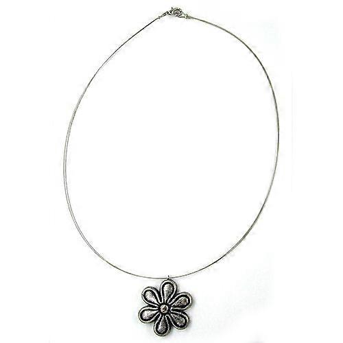 Collier für Kinder, Kunststoff-Blüte, 30mm, altsilber an 2-fach Draht silberfarbig kunststoffummantelt, Verschluss silber-farbig, in Deutschland gefertigte Handarbeit Länge: 40cm : Preis per 1 Stck