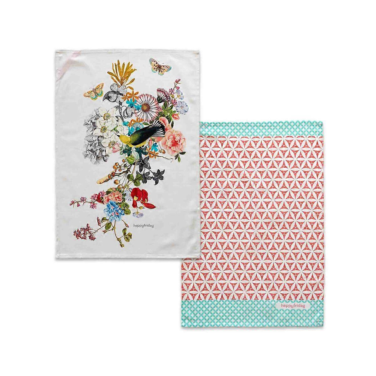 Küchentuch HappyFriday Floral Branch Bunt 70 x 50 cm (2 Stück)