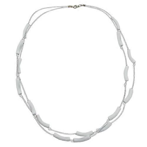 Kette 2-reihig Walze weiß-matt mit Kordel weiß 64cm