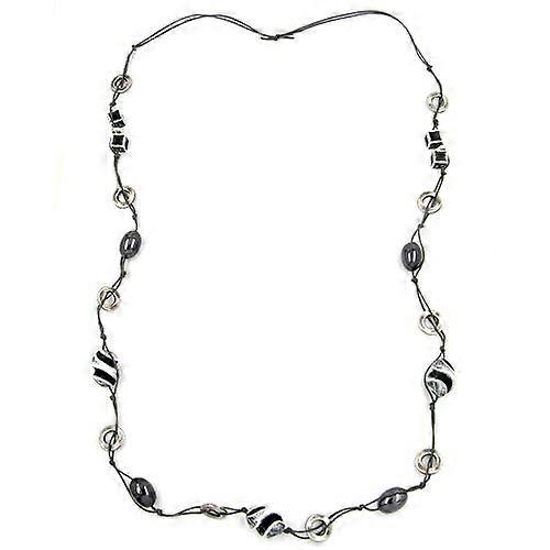 Collier mit dekorativer Kunststoff-Schraubenperle 24mm in weiß-schwarz kombiniert mit Kunststoff-Würfel in weiß-schwarz und Ring in altsilber-farbig, 2-fach Kordel 0,6mm in grau, in Deutschland gefertigte Handarbeit Länge: 110cm Preis per 1 Stck