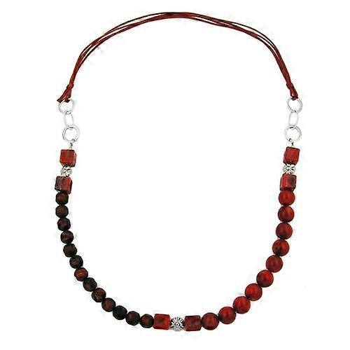 Bei dieser feuerrot-geflammten Modeschmuck-Kette wurden verschiedene hochwertige rot-schwarze Kunststoffperlen wild mit Metallgliedern und Textilkordel kombiniert. Der gefädelte Perlenkettenteil wurde halbseitig mit rot-schwarz-marmorierten 12mm-Rundperlen und auf der anderen Seite mit geknautschten dunkelroten Kunststoffperlen, sogenannten Barockperlen, gefädelt. Verbunden mit einer doppelten 0,6mm dicken dunkelroten Baumwollkordel liegt die Kette leicht und angenehm am Hals oder unter einem Kragen. Die Gesamtlänge beträgt 90cm und ist einkürzbar mittels Schiebeknoten auf 75cm. Blickfang sind auch die drei 14mm großen rhodinierten Metallringe aus einer Messinglegierung, die am Übergang zum textilen Teil der Kette auf jeder Seite funkeln. Lange Ketten ab 60cm eignen sich gut als Pulloverkette und können ohne den Verschluss zu öffnen über den Kopf angelegt werden. Farbiger Schmuck betont die Farben der Kleidung oder setzt zusätzliche Akzente. Länge: 90cm Material: Kunststoff Farbe: rot Preis per 1 Stck