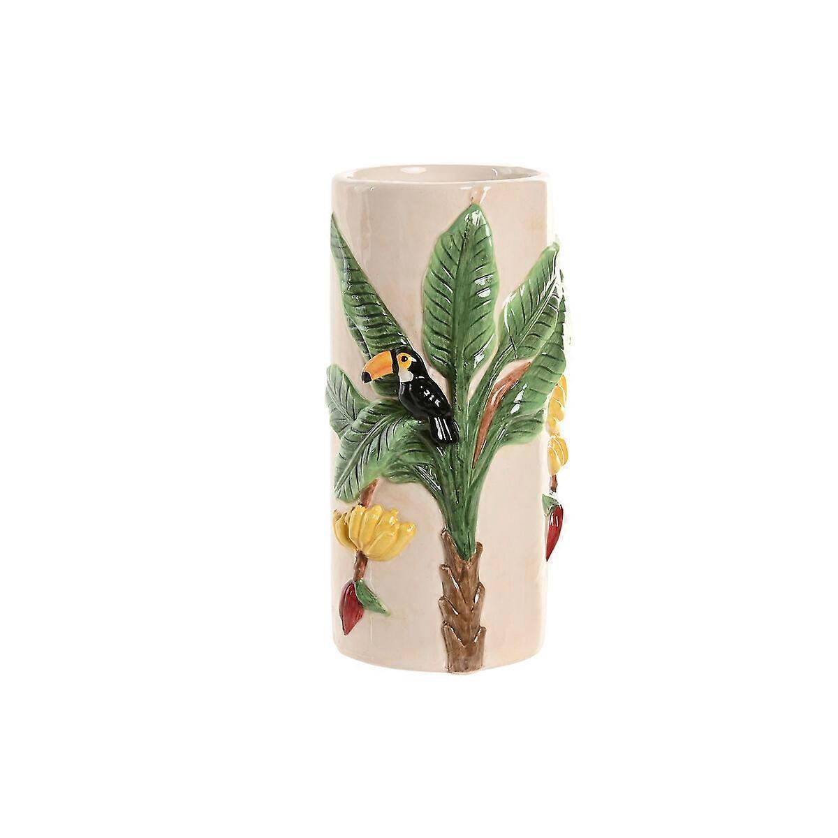 Vase Home ESPRIT grün Beige aus Keramik Vögel Tropical 12 x 12 x 22 cm