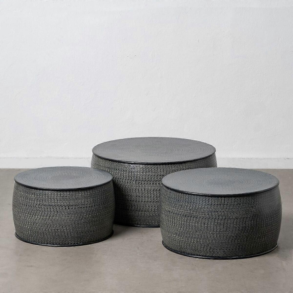 Farbe: SchwarzMaterial: AluminiumBreite: 66 cmLang: 66 cmErfordert Montage: KeinStück: 3 Stückgroß: 34,5 cmArt: BeistelltischMaße ca.: 66 x 66 x 34,5 cmForm: kreisförmig