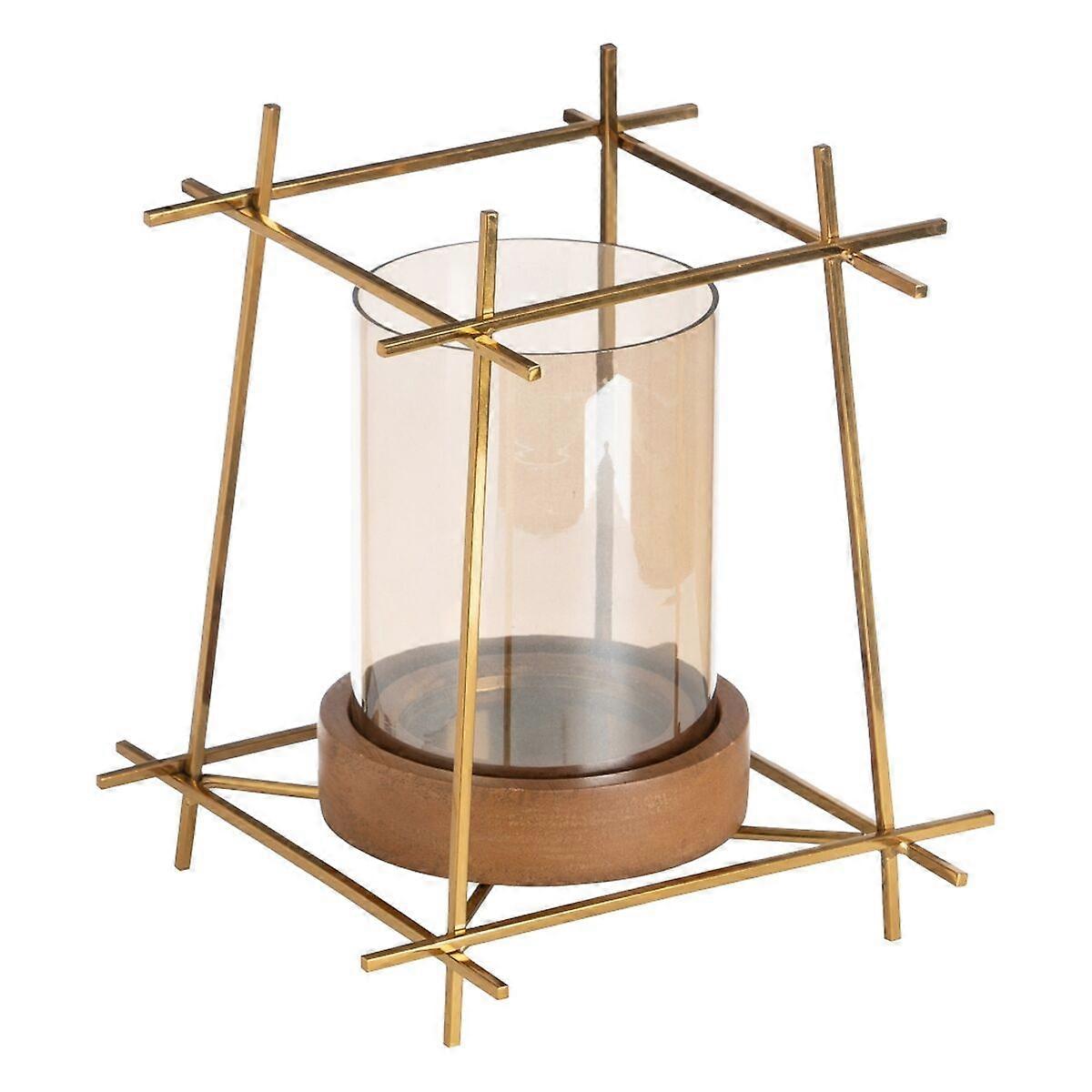 Kerzenschale Braun Gold Holz Kristall Stahl 20 x 20 x 23 cm